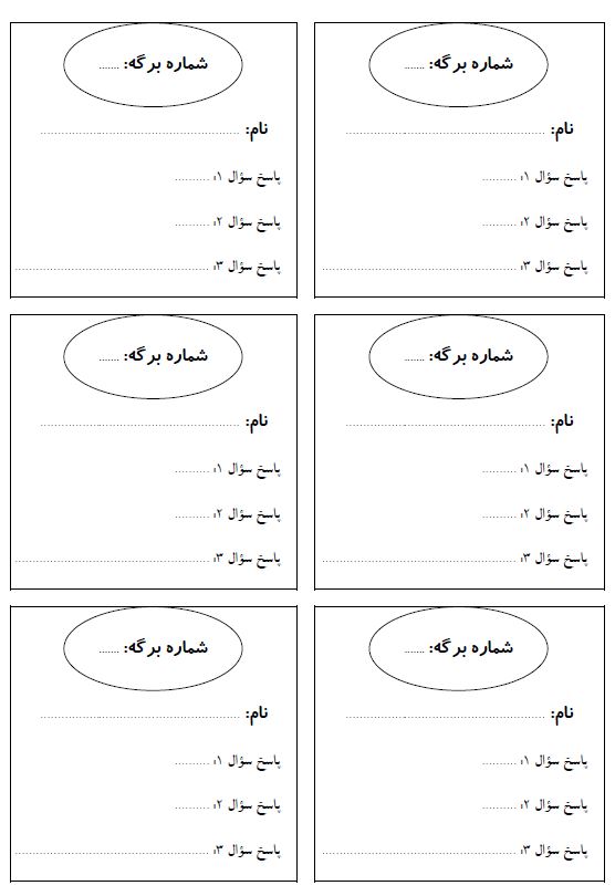 دریافت فایل PDF برگه‌های پاسخنامه